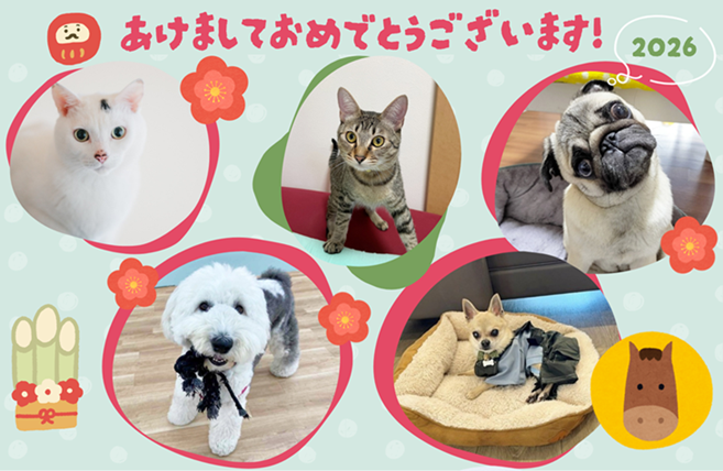 今年もスタッフの家族動物たちと新年のご挨拶を🐶🐱🐾